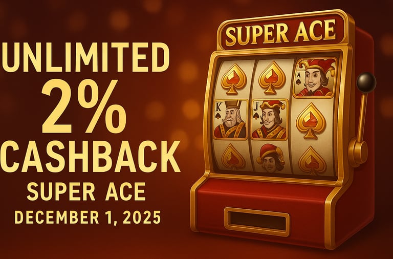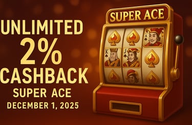 The holiday season begins with rewards you can rely on. The Super Ace Unlimited 2% Cashback promo is designed to empower players, bring energy to the start of the month, and offer guaranteed value with every spin.